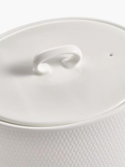 • This teapot is crafted from stylish white fine bone china. Each piece features a carefully crafted intaglio texture with the pattern going deep into the surface. The collection is clean and modern and is dishwasher and microwave safe.